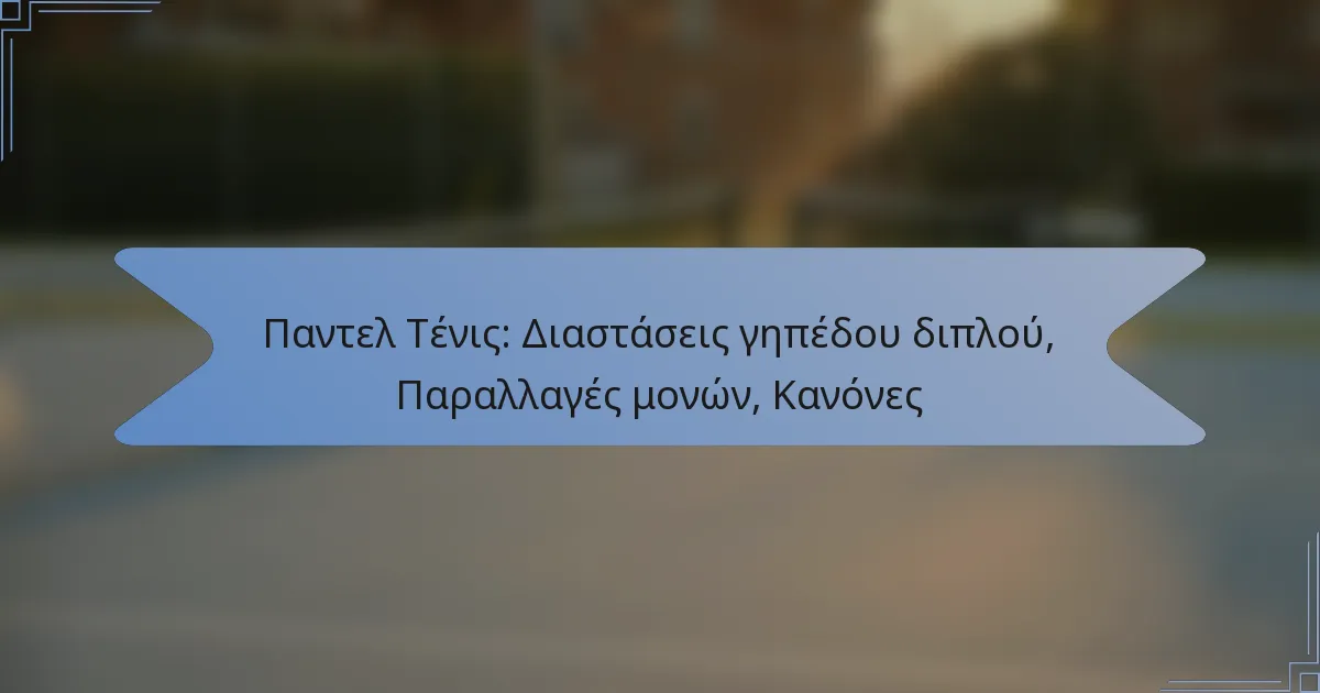 Παντελ Τένις: Διαστάσεις γηπέδου διπλού, Παραλλαγές μονών, Κανόνες