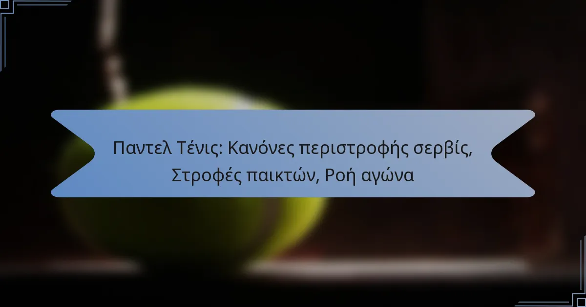 Το τένις παδέλ διαθέτει συγκεκριμένους κανόνες περιστροφής σερβίς που καθορίζουν πώς οι παίκτες εναλλάσσονται στο σερβίρισμα, κάτι που είναι κρίσιμο για τη διατήρηση της ροής του παιχνιδιού και την εξασφάλιση δίκαιης παιχνιδιού. Σε αγώνες διπλού, οι παίκτες σερβίρουν με προκαθορισμένη σειρά και αλλάζουν πλευρές περιοδικά, επιτρέποντας στρατηγικό παιχνίδι. Μια σαφής κατανόηση αυτών των μηχανισμών ενισχύει τη συνολική εμπειρία του αγώνα και βοηθά τους παίκτες να διαχειρίζονται τον χρόνο τους αποτελεσματικά.